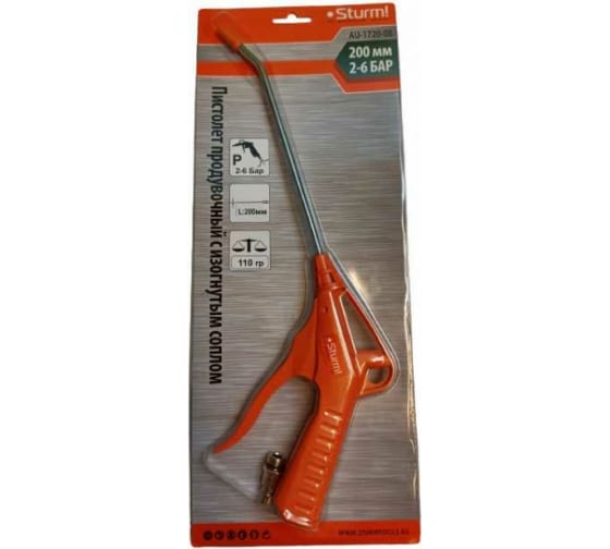 Пистолет продувочный изогнут сопло 2-6 бар, d=3.8мм, сопло l=200мм, Sturm!, AU-1720-08 (основная)